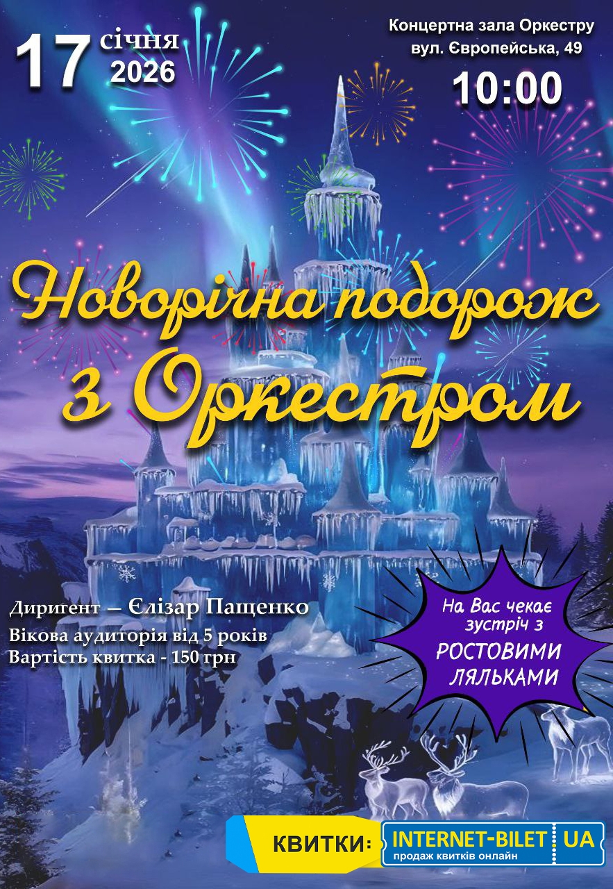 Новогоднее путешествие с Оркестром состоится 17 января 2026, 10:00, суббота в Концертный зал Полтавского симфонического оркестра. С помощью сервиса internet-bilet.ua, Вы сможете с легкостью забронировать, заказать и купить билеты на интересующий Вас концерт, спектакль, оперу, балет, мастер-классы, спортивные и детские мероприятия, оплатив их самым удобным для Вас способом: через интернет банковской картой VISA/MasterCard, наличными или курьером, если сделаете заказ билета c доставкой.