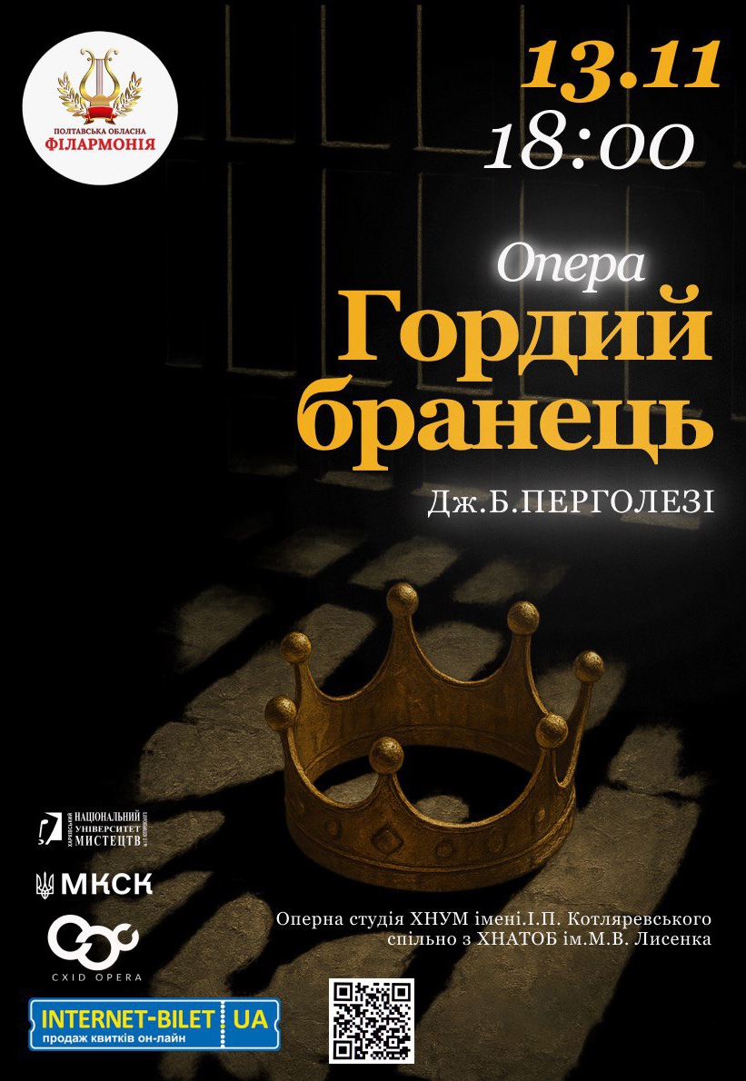 Опера "Гордый пленник" состоится 13 ноября 2025, 18:00, четверг в Полтавская областная филармония. С помощью сервиса internet-bilet.ua, Вы сможете с легкостью забронировать, заказать и купить билеты на интересующий Вас концерт, спектакль, оперу, балет, мастер-классы, спортивные и детские мероприятия, оплатив их самым удобным для Вас способом: через интернет банковской картой VISA/MasterCard, наличными или курьером, если сделаете заказ билета c доставкой.