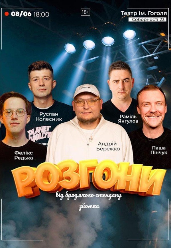 Розгони - імпровізаційний формат де коміки розповідають історії , ідеї для жартів і разом доводять їх до готових комедійних монологів.