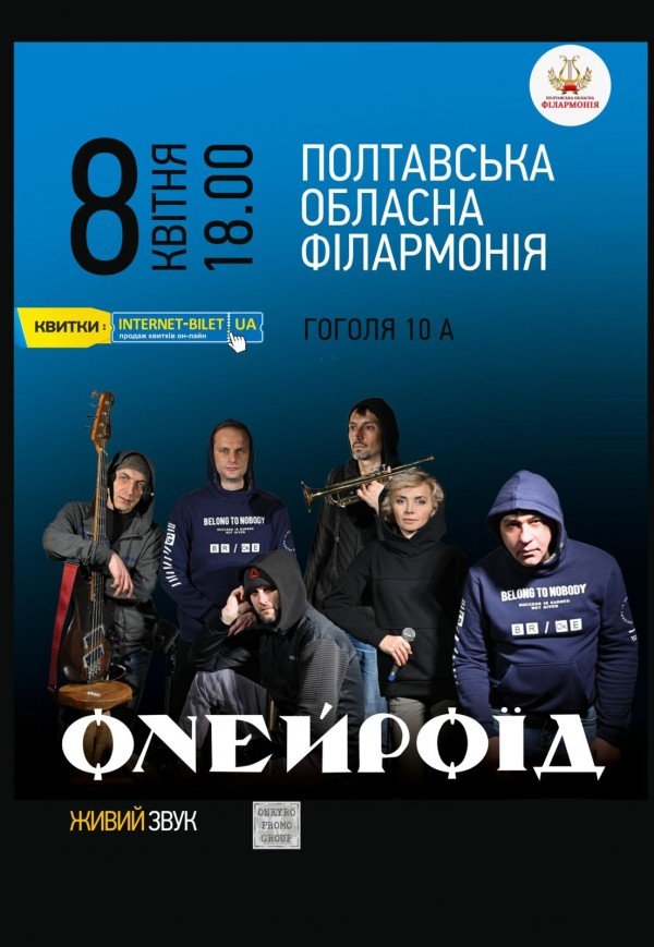 Концерт гурту "Онейроїд" відбудеться 8 квітня 2023, 18:00, субота в Полтавська обласна філармонія. За допомогою сервісу internet-bilet.ua, Ви зможете з легкістю забронювати, замовити та купити квитки на концерт, спектакль, оперу, балет, майстер-класи, спортивні та дитячі заходи, що Вас цікавлять, оплативши їх найбільш зручним для Вас способом: через інтернет банківською карткою VISA/MasterCard, готівкою або кур'єром, якщо зробите замовлення квитка з доставкою.