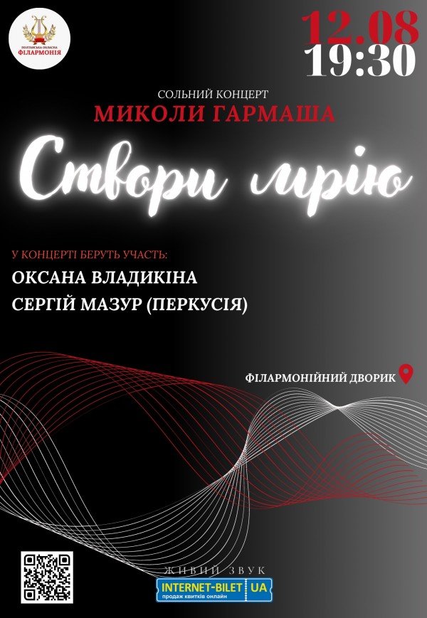Концерт "Створи мрію" відбудеться 12 серпня 2023, 19:30, субота в Полтавська обласна філармонія. За допомогою сервісу internet-bilet.ua, Ви зможете з легкістю забронювати, замовити та купити квитки на концерт, спектакль, оперу, балет, майстер-класи, спортивні та дитячі заходи, що Вас цікавлять, оплативши їх найбільш зручним для Вас способом: через інтернет банківською карткою VISA/MasterCard, готівкою або кур'єром, якщо зробите замовлення квитка з доставкою.