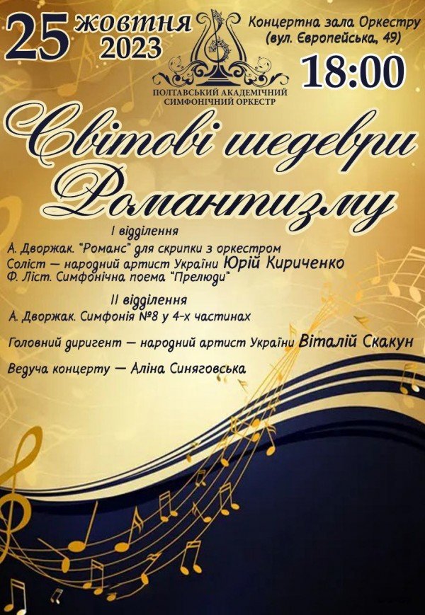 Концерт "Світові шедеври романтизму" відбудеться 25 жовтня о 18.00