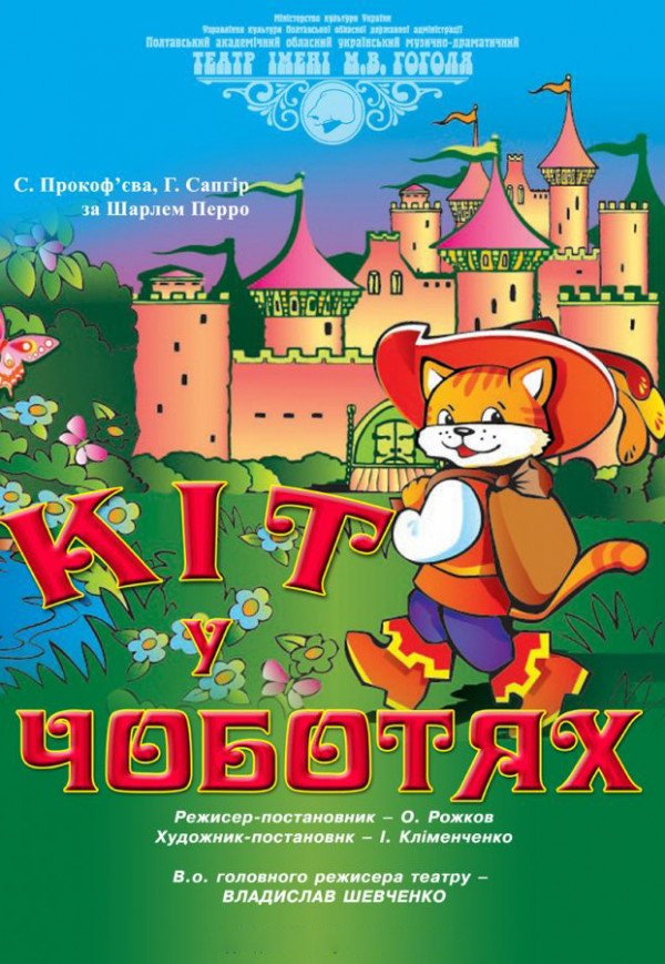 Вистава "Кіт у чоботях" відбудеться 2 вересня 2023, 12:00, субота в Академічний обласний музично-драматичний театр ім. М.В. Гоголя. За допомогою сервісу internet-bilet.ua, Ви зможете з легкістю забронювати, замовити та купити квитки на концерт, спектакль, оперу, балет, майстер-класи, спортивні та дитячі заходи, що Вас цікавлять, оплативши їх найбільш зручним для Вас способом: через інтернет банківською карткою VISA/MasterCard, готівкою або кур'єром, якщо зробите замовлення квитка з доставкою.