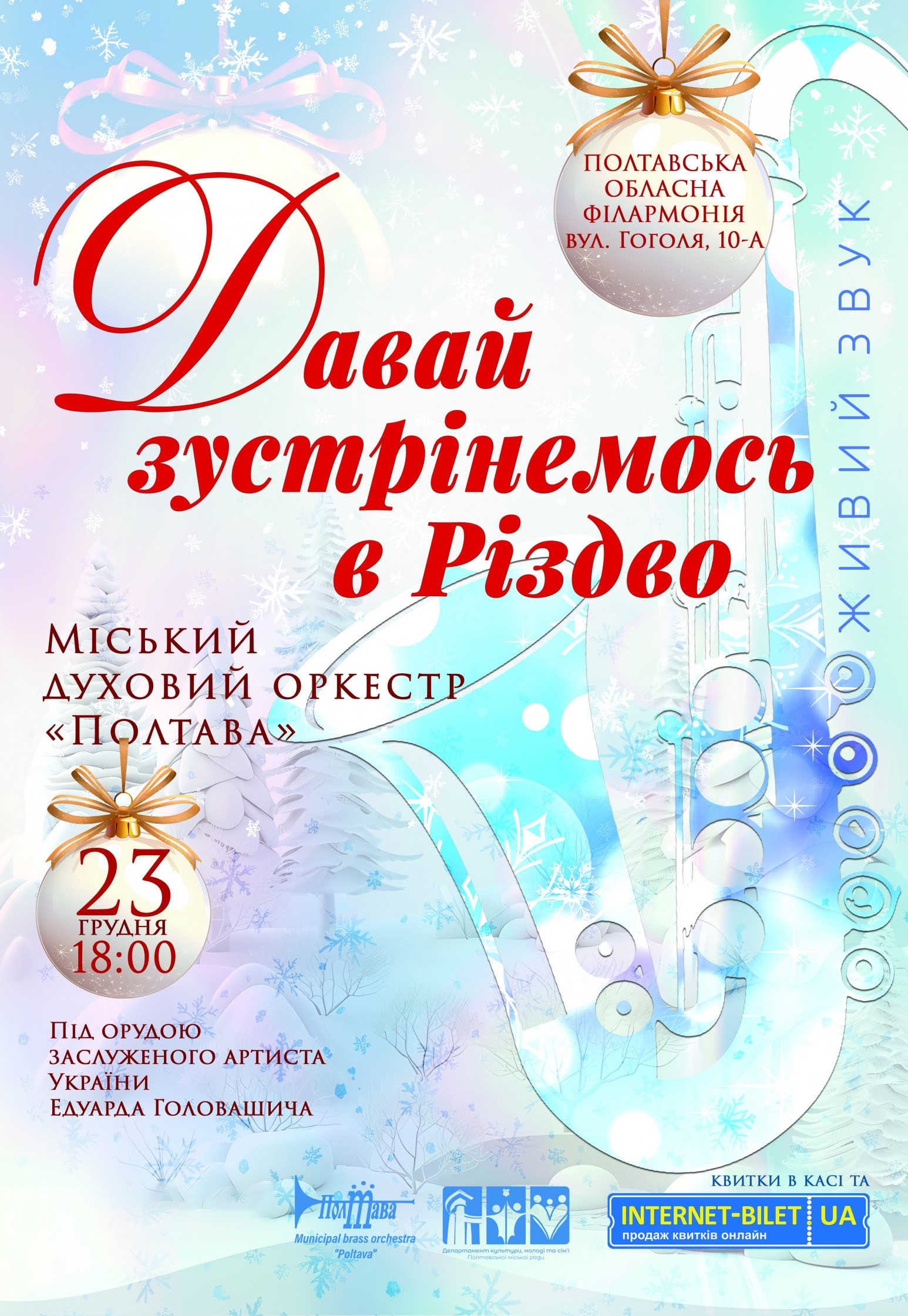 Придбати квиток на Міський духовий оркестр "Полтава". "Давай зустрінемось в Різдво" можливо не відходячи від комп'ютера!