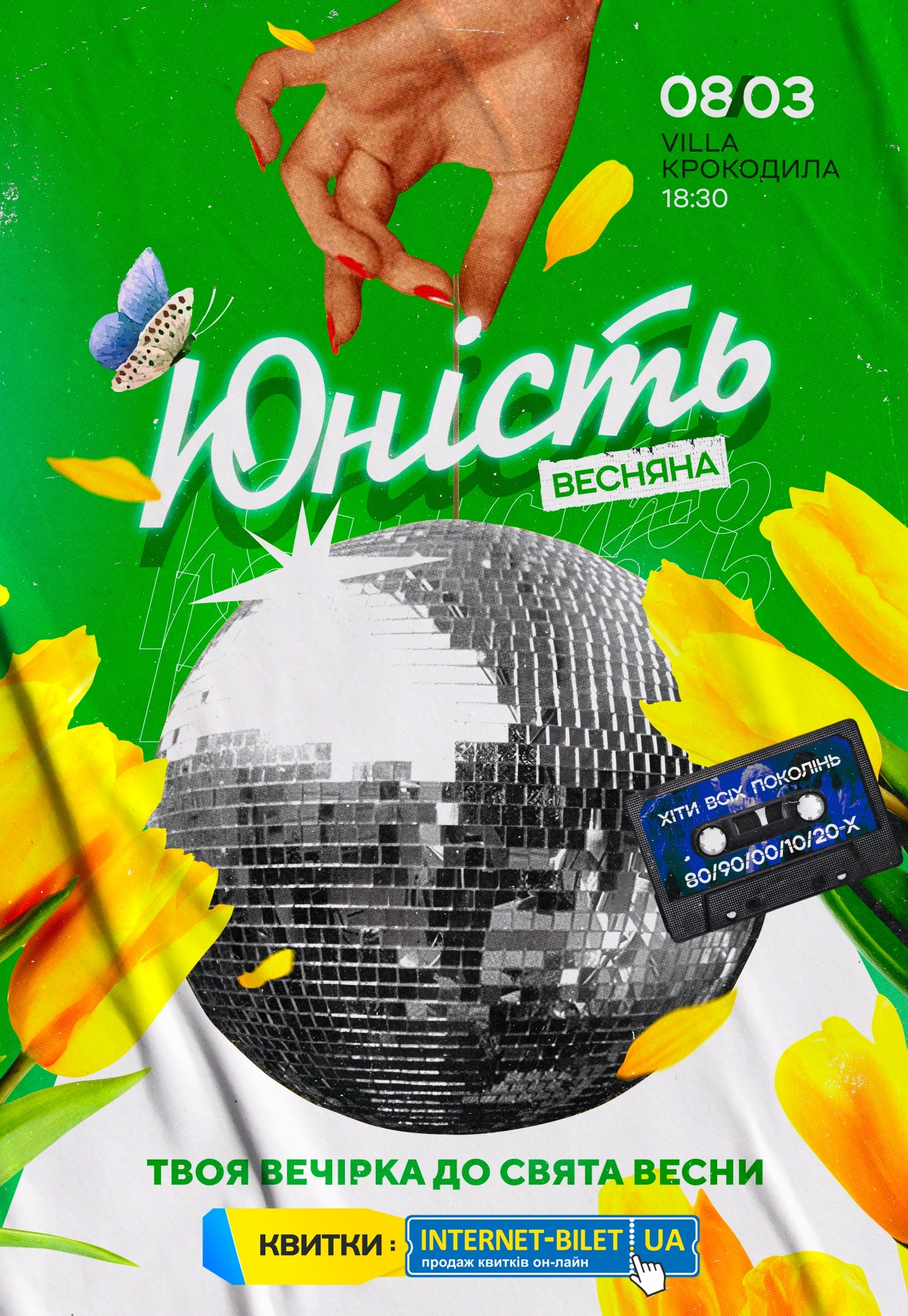 Зустрічаємо весну разом! Раді запросити вас поринути в солодку ностальгічну атмосферу весняної Юності та віддати належне чарівним особистостям, які роблять цей божевільний світ прекрасним! На вас чекає вечірка всіх поколінь під хіти 80, 90, 00, 10 та 20-х років. Під улюблену атмосферу Юності.