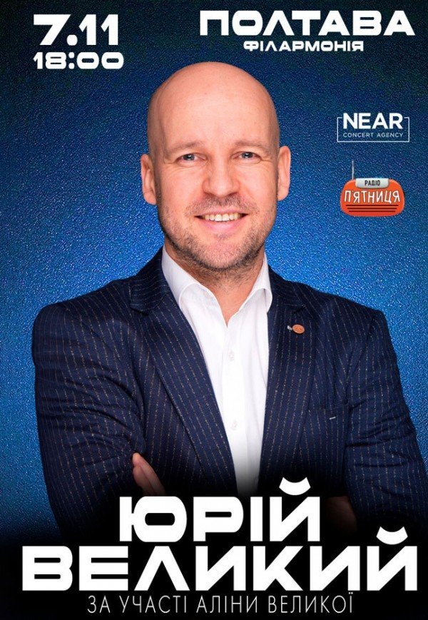 Юрій Великий відбудеться 7 листопада 2025, 18:00, п’ятниця в Полтавська обласна філармонія. За допомогою сервісу internet-bilet.ua, Ви зможете з легкістю забронювати, замовити та купити квитки на концерт, спектакль, оперу, балет, майстер-класи, спортивні та дитячі заходи, що Вас цікавлять, оплативши їх найбільш зручним для Вас способом: через інтернет банківською карткою VISA/MasterCard, готівкою або кур'єром, якщо зробите замовлення квитка з доставкою.
