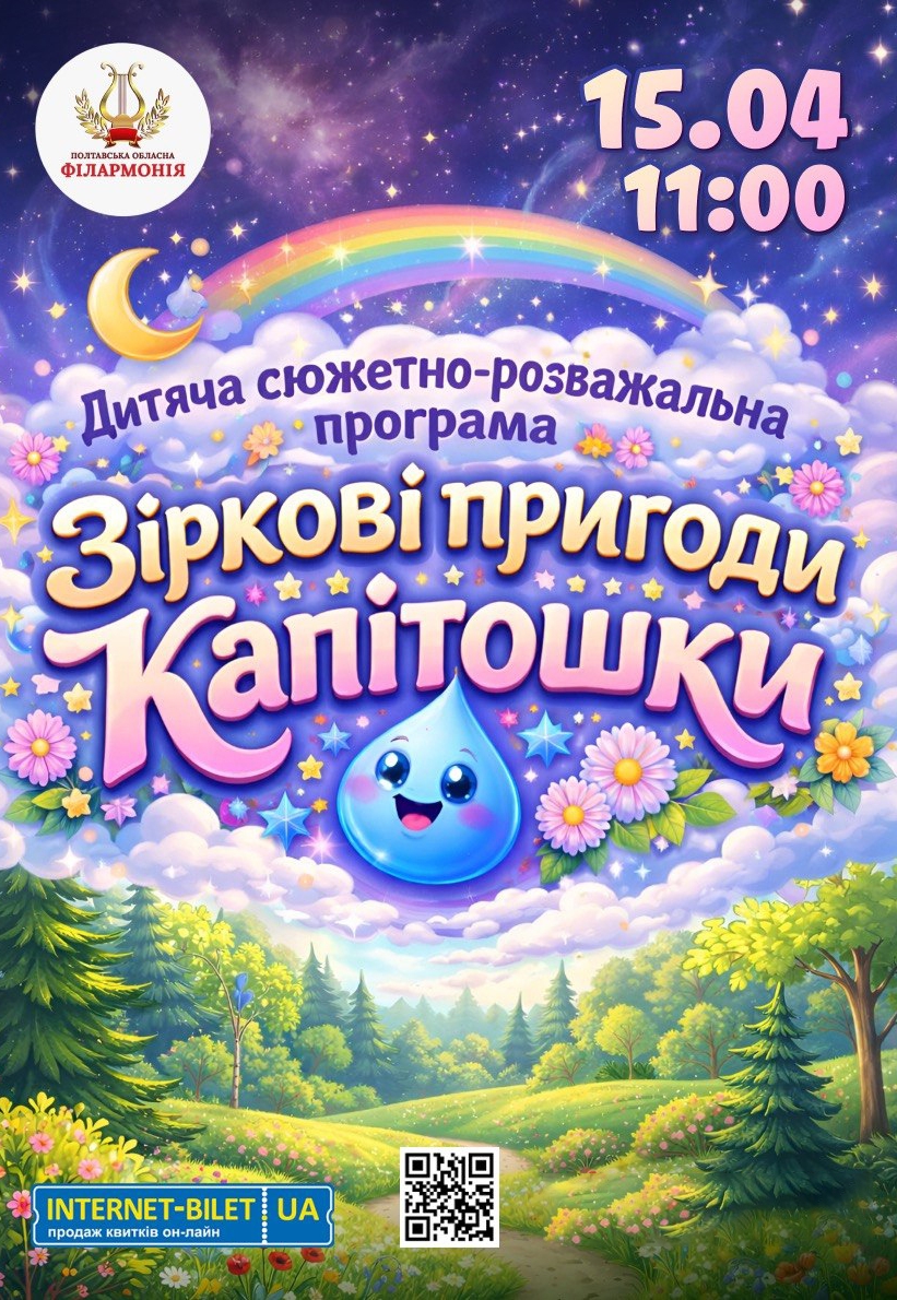 Зіркові пригоди Капітошки відбудеться 15 квітня 2026, 11:00, середа в Полтавська обласна філармонія. За допомогою сервісу internet-bilet.ua, Ви зможете з легкістю забронювати, замовити та купити квитки на концерт, спектакль, оперу, балет, майстер-класи, спортивні та дитячі заходи, що Вас цікавлять, оплативши їх найбільш зручним для Вас способом: через інтернет банківською карткою VISA/MasterCard, готівкою або кур'єром, якщо зробите замовлення квитка з доставкою.